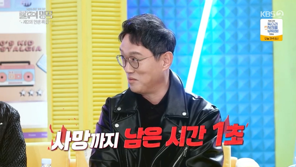 고명환은 "우리나라에서 제일 좋다는 병원 중 하나에서 눈을 떴는데 '저보고 1초 후에 사망할 수 있으니 유언부터 하시라'라고 하더라"라며 "그러다 중환자실로 갔고, 기적적으로 다시 살아났다"라고 털어놨다.