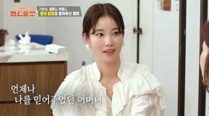 이날 기은세는 선배 전인화와의 대화에서 그간의 개인사를 조심스럽게 꺼냈다. 그는 “20대 전체를 연기자로서 인정받지 못하고 결혼했다. 다시 일을 하게 될 줄 몰랐는데, 지금은 정말 일에 대한 욕심이 커졌다”고 말했다. 이어 “이혼했을 때 엄마가 ‘괜찮다’고 해줘서 큰 위안이 됐다”며 가족에 대한 고마움도 전했다.