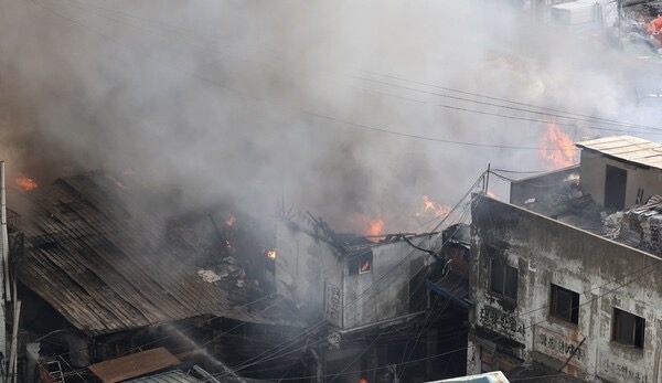 어제(28일) 오후 3시 반쯤 서울 중구 을지로에 있는 노후 상가 건물에서 불이 나 12시간여 만인 오늘(29일) 새벽 3시 50분쯤 꺼졌습니다.