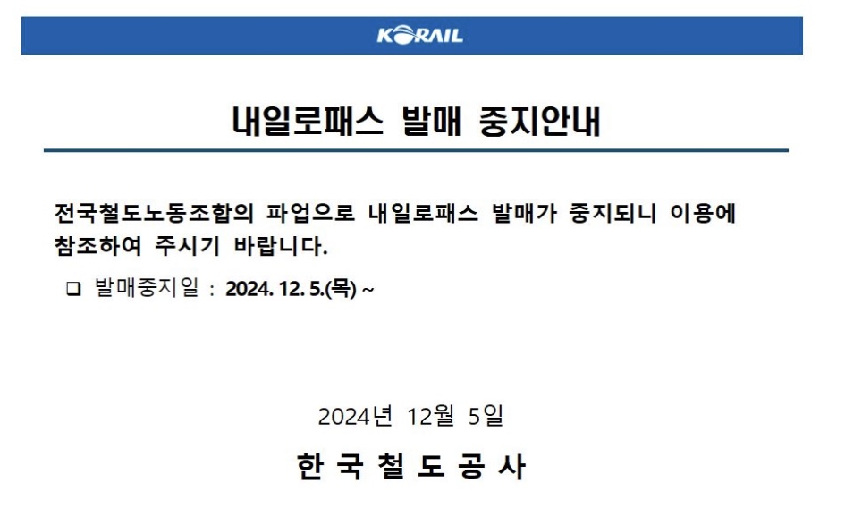 코레일 파업으로 인해