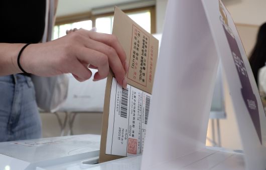 제21대 대통령선거 사전투표 첫날인 29일 서울 강남구의 한 사전투표소에서 한 유권자가 다른 사람의 신분증으로 대리 투표를 했다. 수사 결과 이 유권자는 강남구 현직 공무원인 선거사무원으로 밝혀졌다.