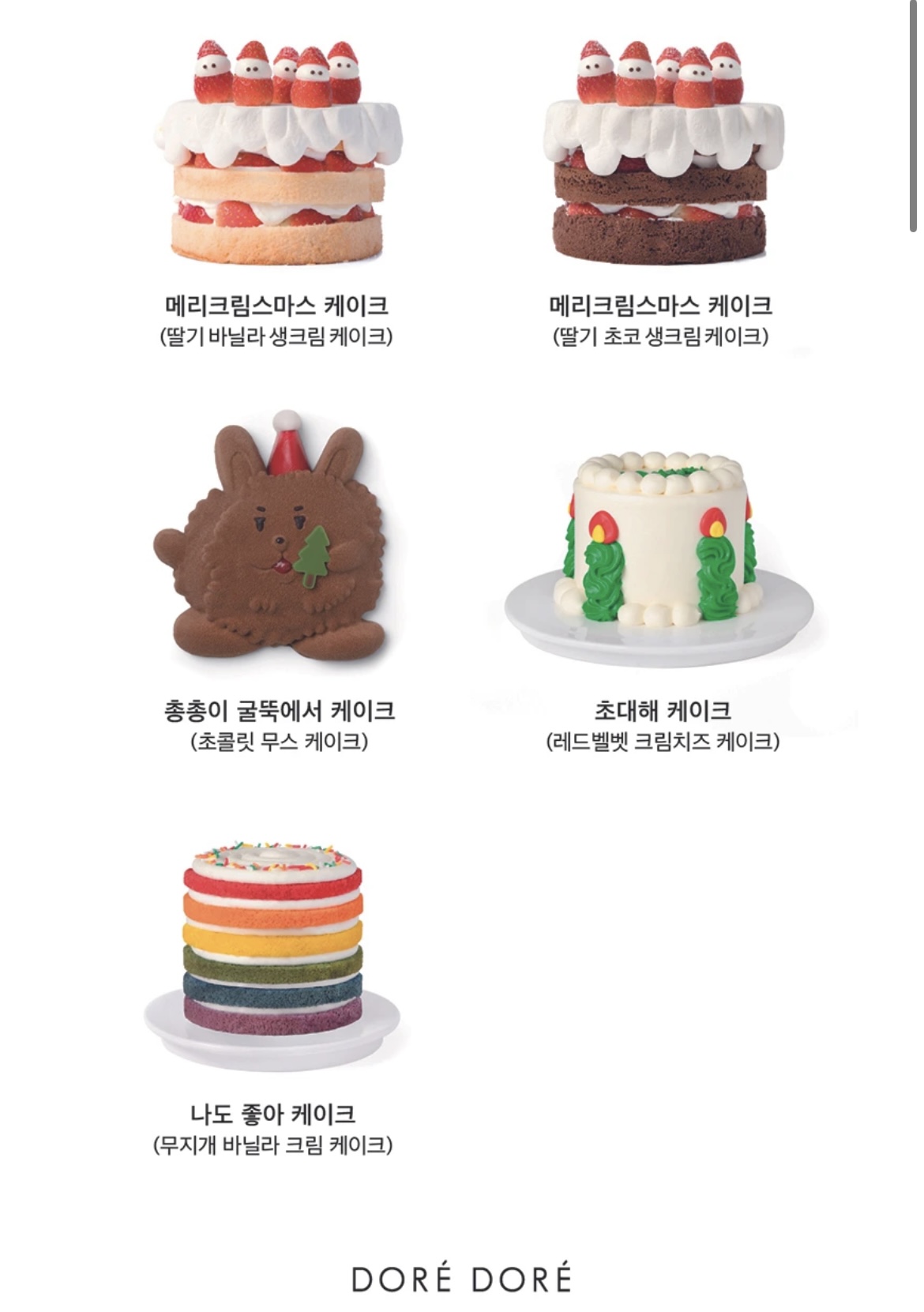 아래 케이크 종류 안내드리겠습니다.