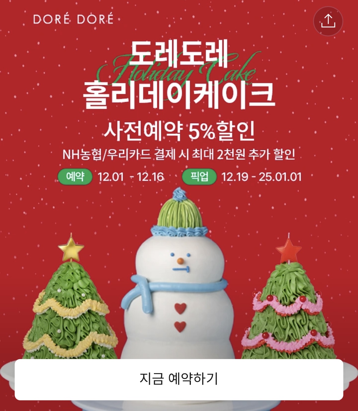 오늘은 크리스마스 케이크 사전예약 할인 혜택을