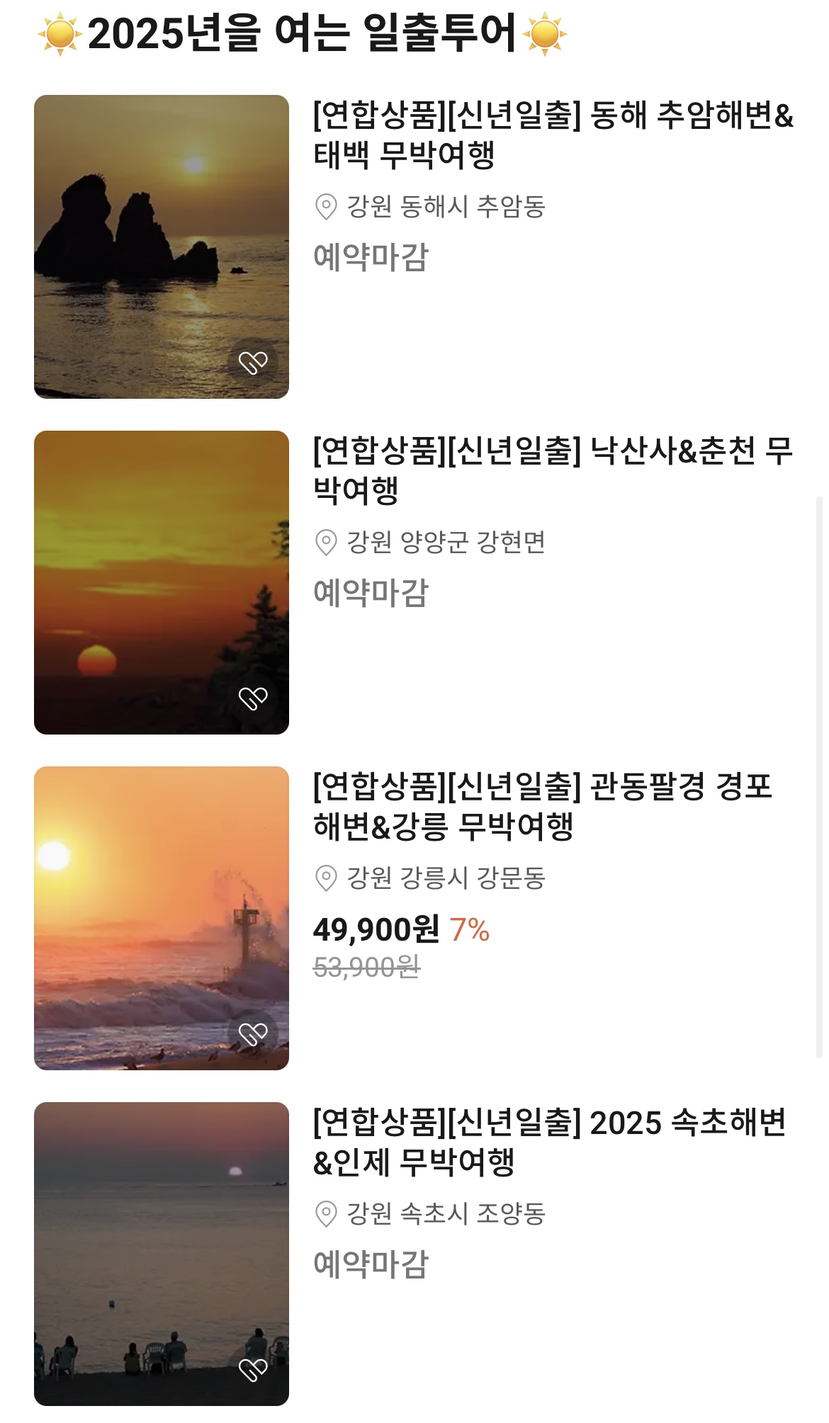 일출을 보러 떠나는 여행 상품을 소개하겠습니다.